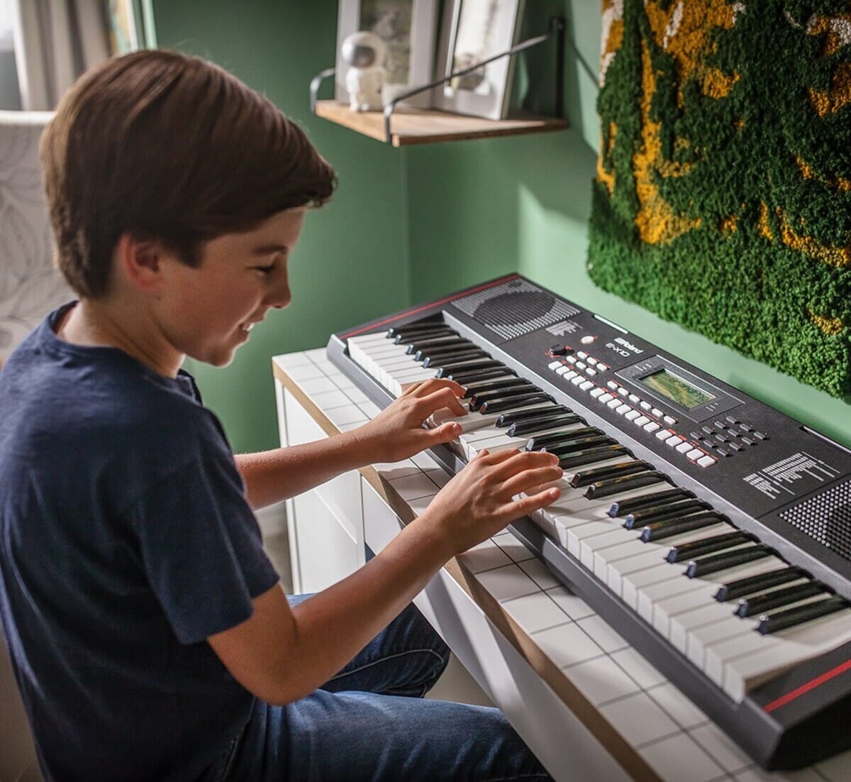 Start din musikalske reise med E-X10, et inspirerende startkeyboard med kvalitetsfunksjoner hentet fra profesjonelle Roland-instrumenter. Ha det gøy mens du lærer med uttrykksfulle akustiske pianoer og hundrevis av andre lyder. Kommander et fullt band med autoakkompagnement og koble til en mikrofon for å synge med. Ta opp keyboardopptredener for å sjekke fremgangen din. Og spill hvor som helst med den elegante bærbare designen, innebygd stereohøyttalersystem og støtte for batteridrevet drift.