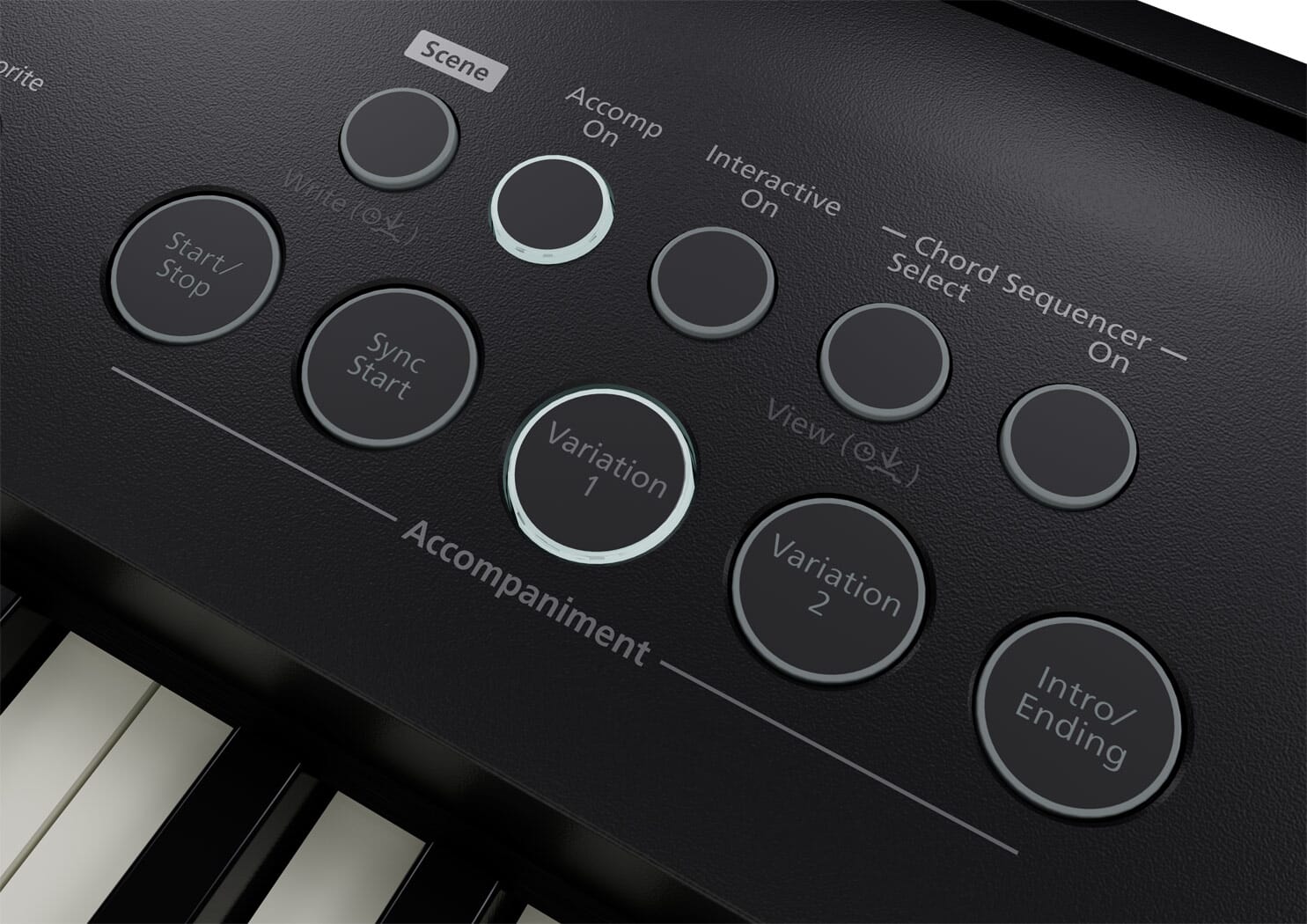 - Displayet på øverste nivå viser lyd, tempo og annen viktig informasjon, og det rene paneloppsettet gir direkte tilgang til lydvalg, favoritttoner, tastaturtransponering og mer. Mange knapper inkluderer langtrykksfunksjoner, som lar deg lagre innstillinger eller justere dypere parametere uten menydykking. Med Scenes kan du umiddelbart hente fullstendige oppsett for hele tastaturet ved hjelp av enkelthandlinger.